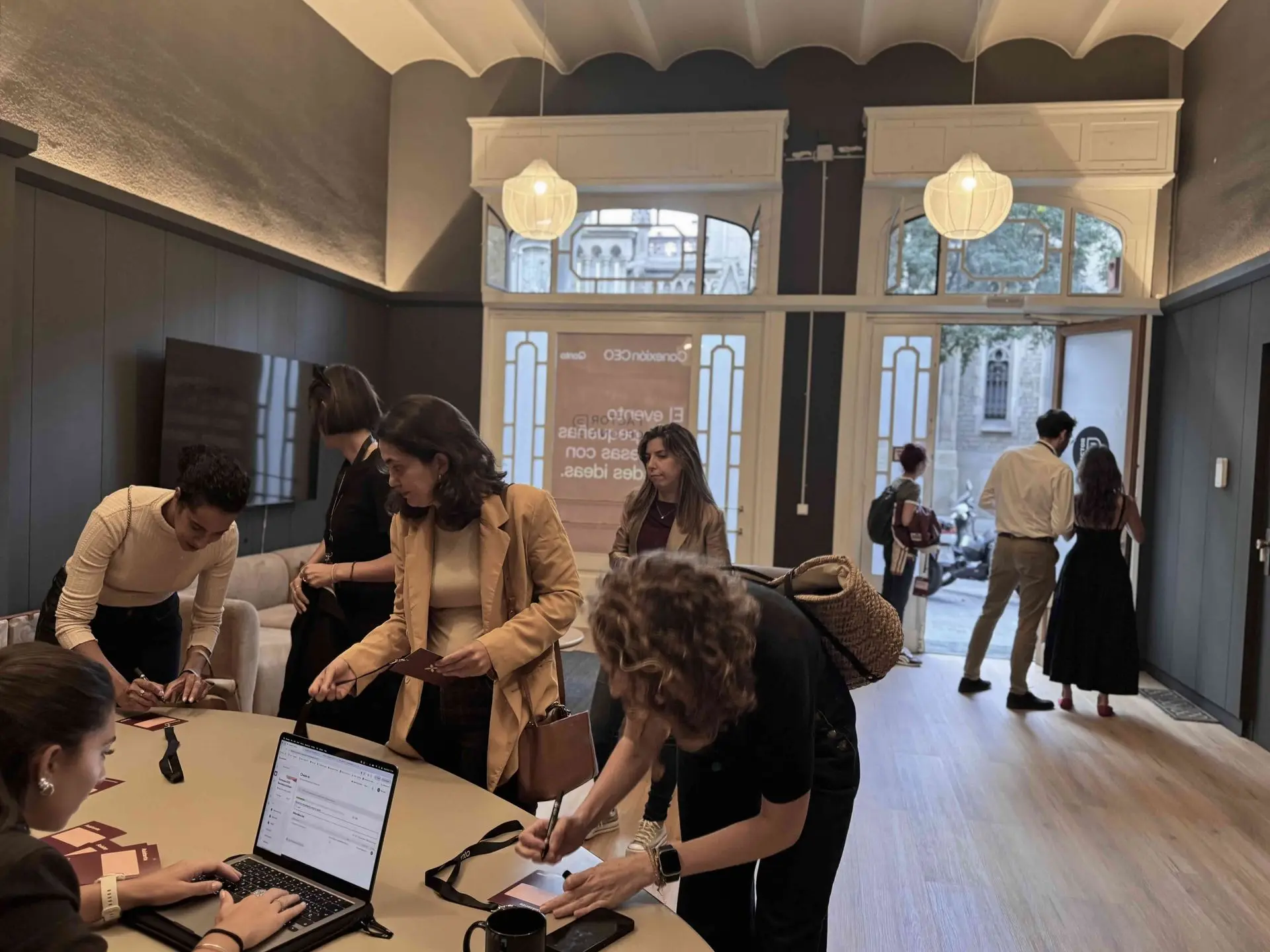 Quan Factor Barcelona s’utilitza per a conferències, sessions de formació o reunions privades, The Storefront serveix com a zona d’acreditació, benvinguda i branding. És el primer punt de contacte amb els assistents i permet la instal·lació de taulells, senyalització personalitzada, pantalles, elements de marca i personal d’atenció al client.