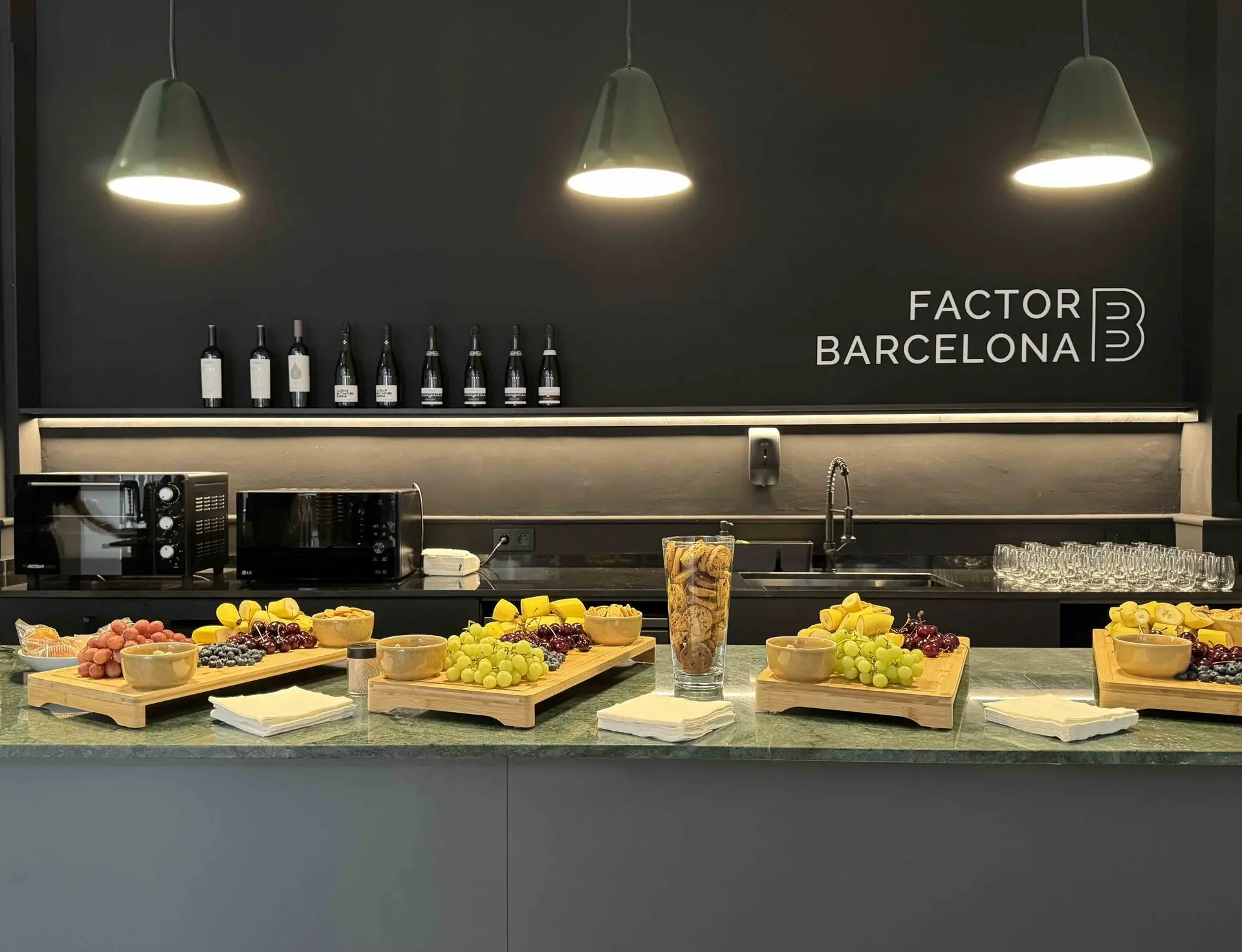 The Prep és la zona de suport gastronòmic i logístic de Factor Barcelona. Es tracta d’una cuina tècnica completament equipada, pensada com a espai de servei per a càtering, muntatge de coffee breaks, assistència a equips de producció o preparació de propostes gastronòmiques senzilles durant esdeveniments corporatius.